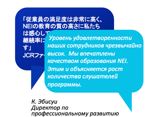 Среди студентов NEI оказались специалисты по продажам, рекрутеры по набору участников клинических испытаний, менеджеры, а также научные сотрудники, которые раньше могли только читать специализированную литературу. Теперь они осмеливаются выступать на научных конференциях и обсуждать свои исследования на английском языке!