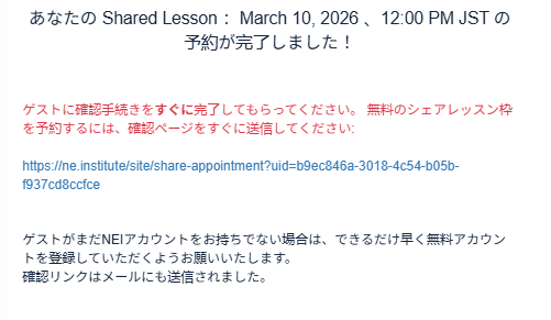 今すぐ試してみましょう。NEIスケジュールでレッスンを予約し、「Shared Lesson」を選択して、友人や同僚を招待してください。