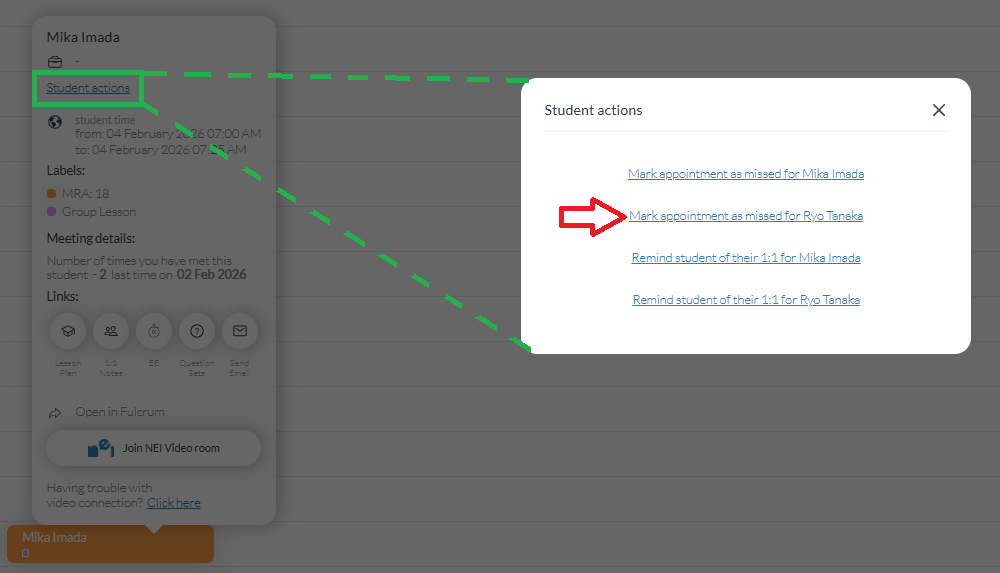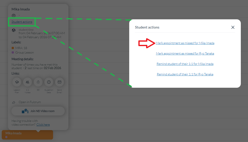 Don’t forget to mark the GUEST as missed after the lesson ends!